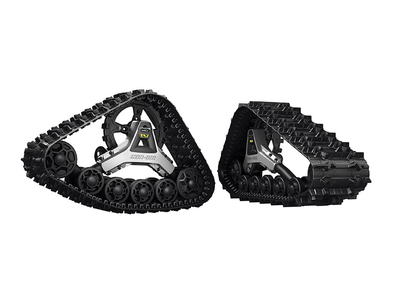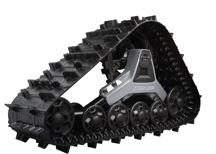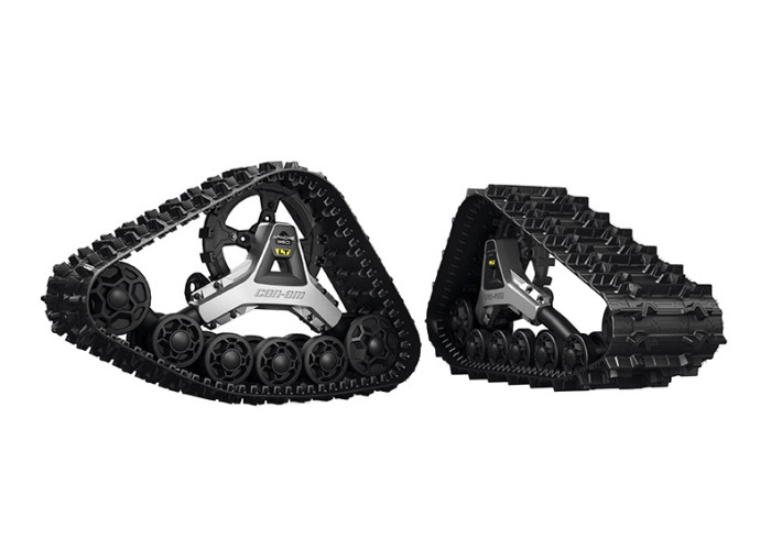 Multifunctional tracks designed to support heavy loads and to fit on most Can-Am off-road vehicles.