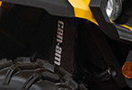Front shock covers offer added protection in rough terrain and weather conditions.