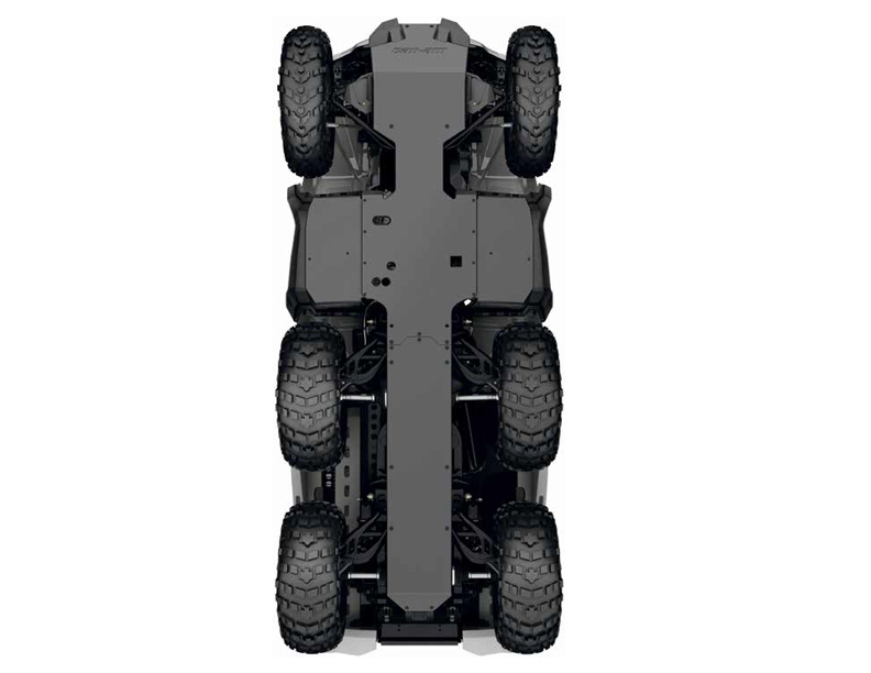 - A full body plastic skid plate (10 mm HDPE) designed to protect the frame and the engine case from rough terrain conditions.