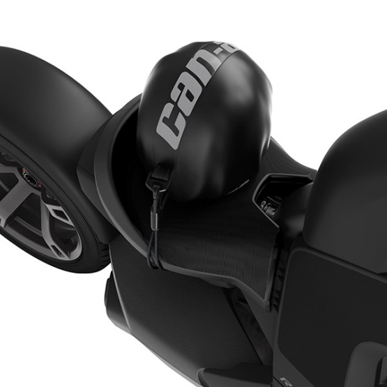 Allows you to lock your helmet onto the seat. Doubles as rain guard for seat.