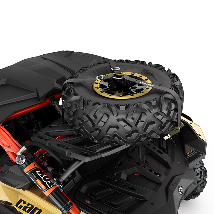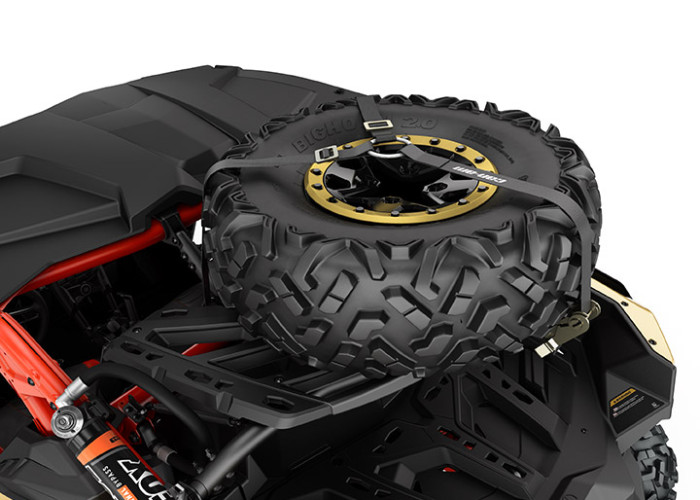 - Includes custom tie-down strap for fast spare tire installation or removal.