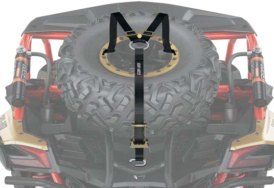 Spare tire ratchet tie-downs - X3 designed to securely hold spare tires on accessories equipped with integrated spare tire attachment points.